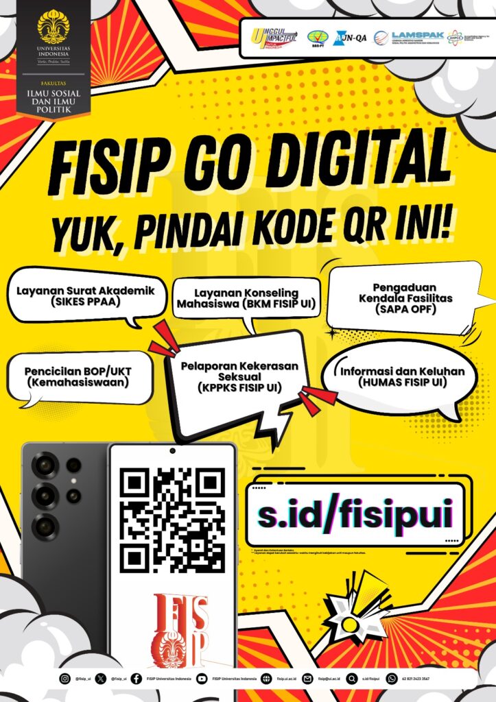 Informasi lebih lanjut mengenai layanan ini dapat diakses melalui kanal media sosial resmi FISIP UI. Program ini menjadi bagian dari komitmen FISIP UI untuk terus berinovasi dalam memberikan layanan terbaik bagi sivitas akademika serta mendukung visi UI Unggul dan Impactful untuk Indonesia.
