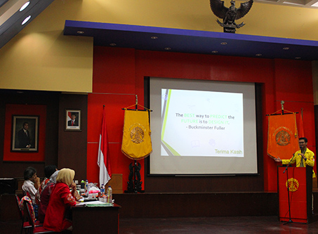 Sembilan mahasiswa FISIP UI mempresentasikan karya tulis ilmiah masing-masing dalam acara Presentasi Karya Tulis Ilmiah, Seleksi Mahasiswa Berprestasi FISIP UI 2016. Presentasi tersebut dilakukan di Auditorium Juwono Sudarsono pada Rabu (13/4/2016).