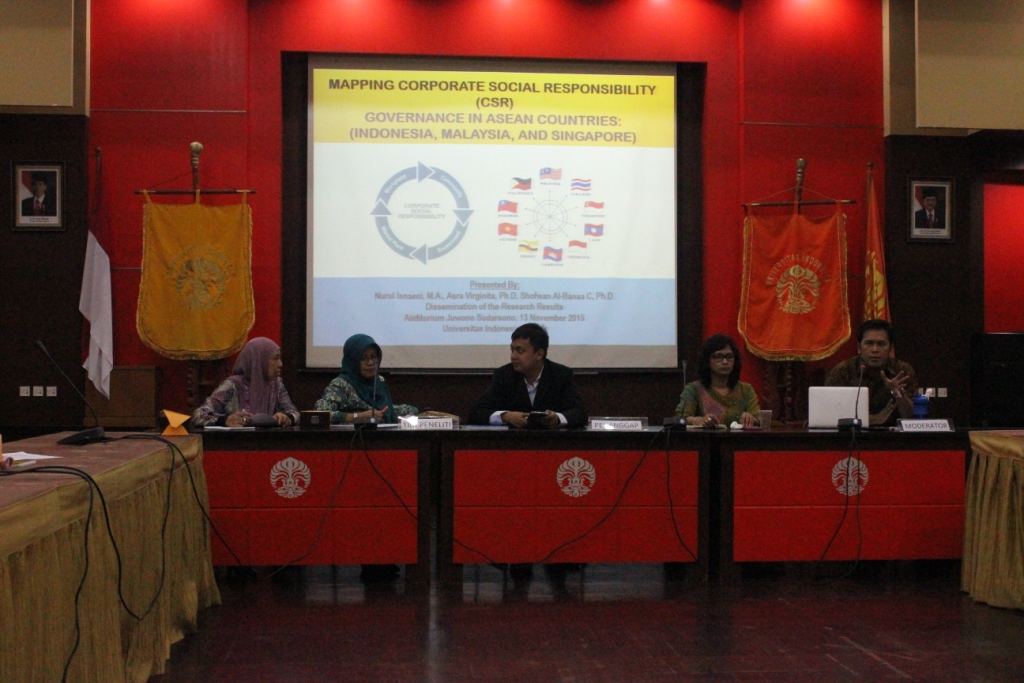 “CSR merupakan isu dinamis yang sangat relevan dalam konteks ASEAN dan MEA. Isu CSR menjadi penting terutama dalam kaitannya dengan social justice rights,” kata Nurul dalam diseminasi hasil penelitian berjudul Mapping Corporate Social Responsibility Governance in ASEAN Countries, pada Jumat (13/11/2015), di Auditorium Juwono Sudarsono, Kampus FISIP UI.