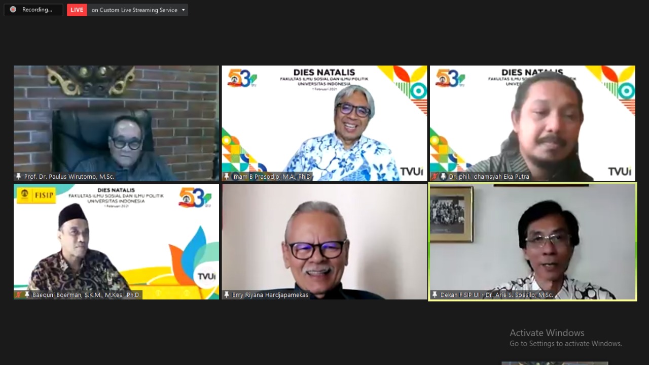 Fakultas Ilmu Sosial dan Ilmu Politik (FISIP) Universitas Indonesia menyelenggarakan Selo Soemardjan Memorial Discussion–Panel Session dengan topik Melawan “Keletihan Sosial” di Masa Pandemi pada Kamis (25/02) secara daring. Acara ini merupakan salah satu acara yang termasuk dalam rangkaian Dies Natalis FISIP UI ke–53.